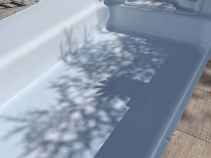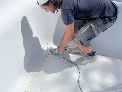 our remettre la piscine en état, nous avons procédé à une réparation complète du fond de la coque, qui avait été fissuré suite à une mauvaise vidange. Cette intervention a nécessité une reprise structurelle du fond, assurant un support à la fois solide et étanche, avant l’application d’une peinture spécifique pour piscine coque.